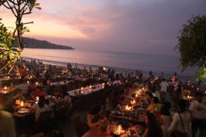 Jimbaran seafood is a must-try when visiting Bali, especially for seafood lovers. This scenic bay is not only famous for its breathtaking sunsets but also for its delicious grilled seafood. Along the white-sand shores of Pantai Muaya, you’ll find over a dozen seafood cafés serving fresh, flavorful dishes, making it the perfect spot for a memorable dining experience by the sea.